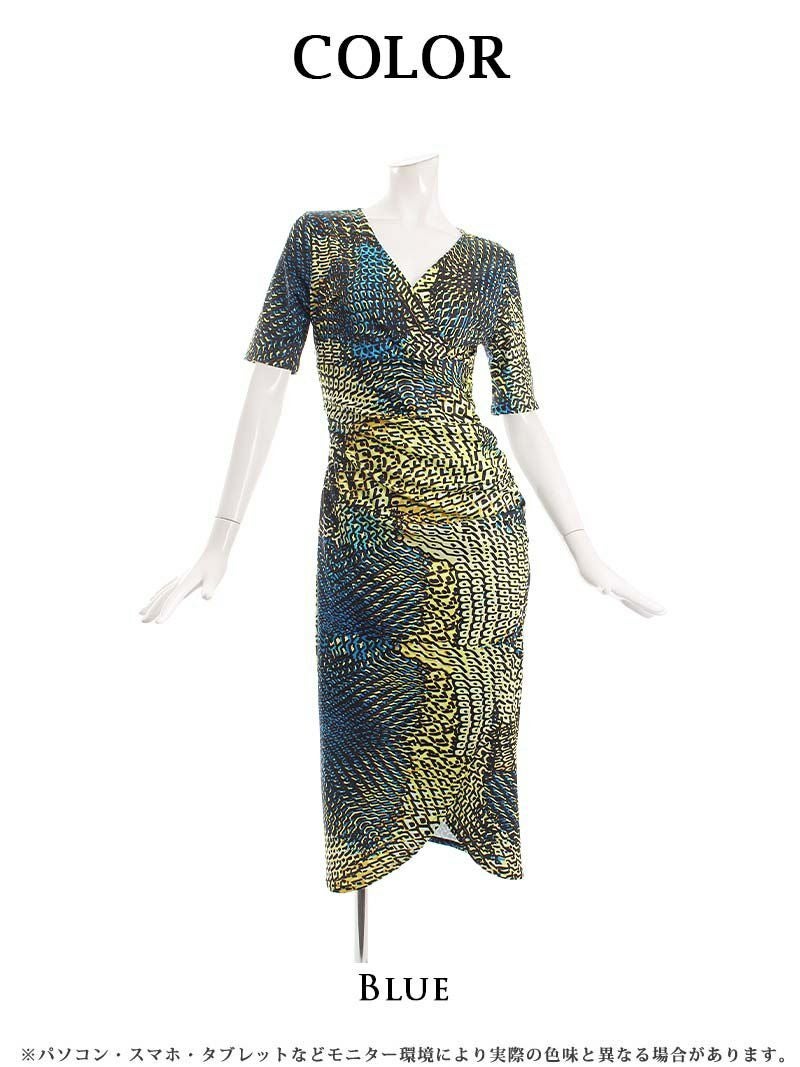 訳ありセクシースタイル 【訳ありアウトレット】大人の魅力ミディ丈ゆる韓国キャバワンピース【DAYS PIECE】(S/M/L)(ブルー) ptpl