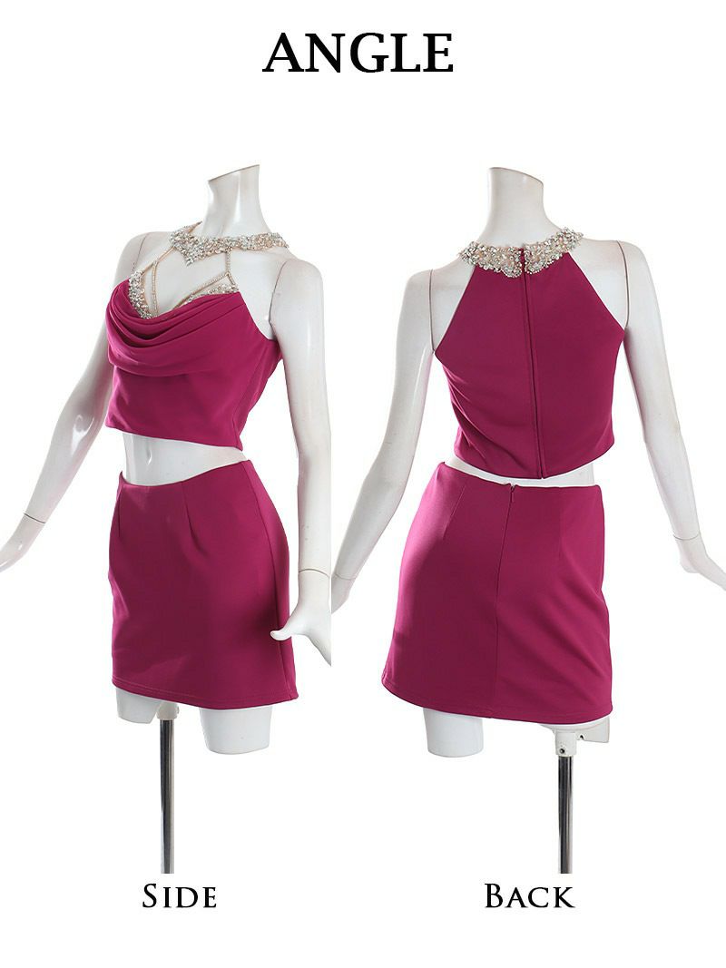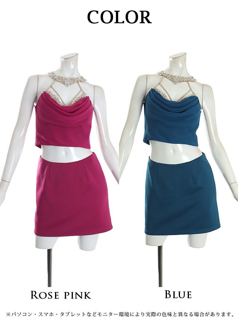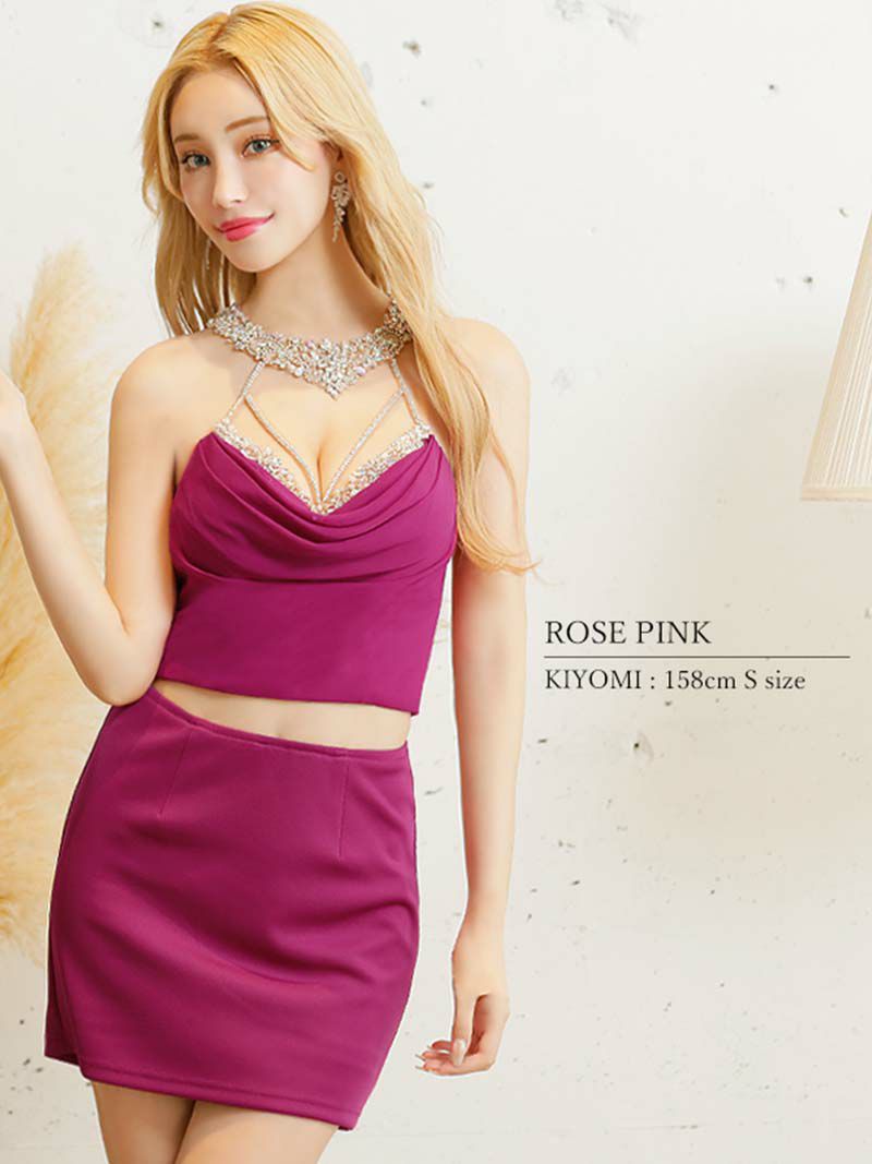 6. 【Angel R/エンジェルアール】バストビジュー谷間魅せタイトセットアップキャバドレス(S/M)(ローズピンク/ブルー)