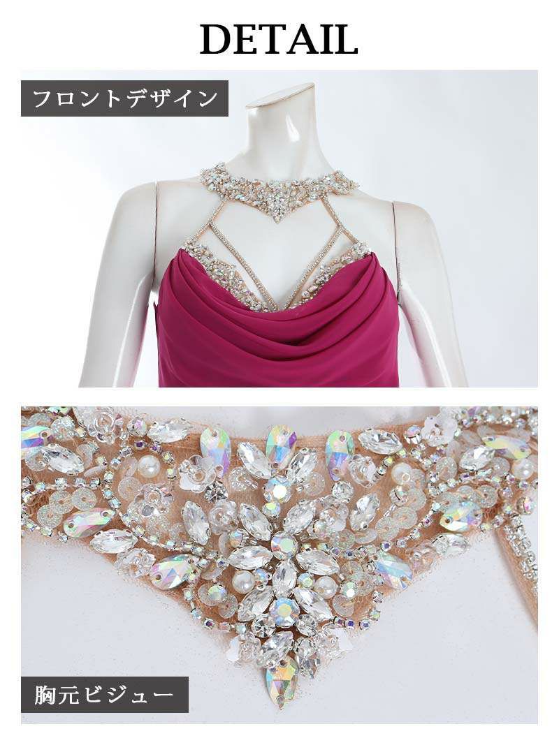 深みのあるローズピンクとブルーの2色展開のキャバドレスはどちらも大人の色気を醸し出すキャバクラドレスに仕上げています。
