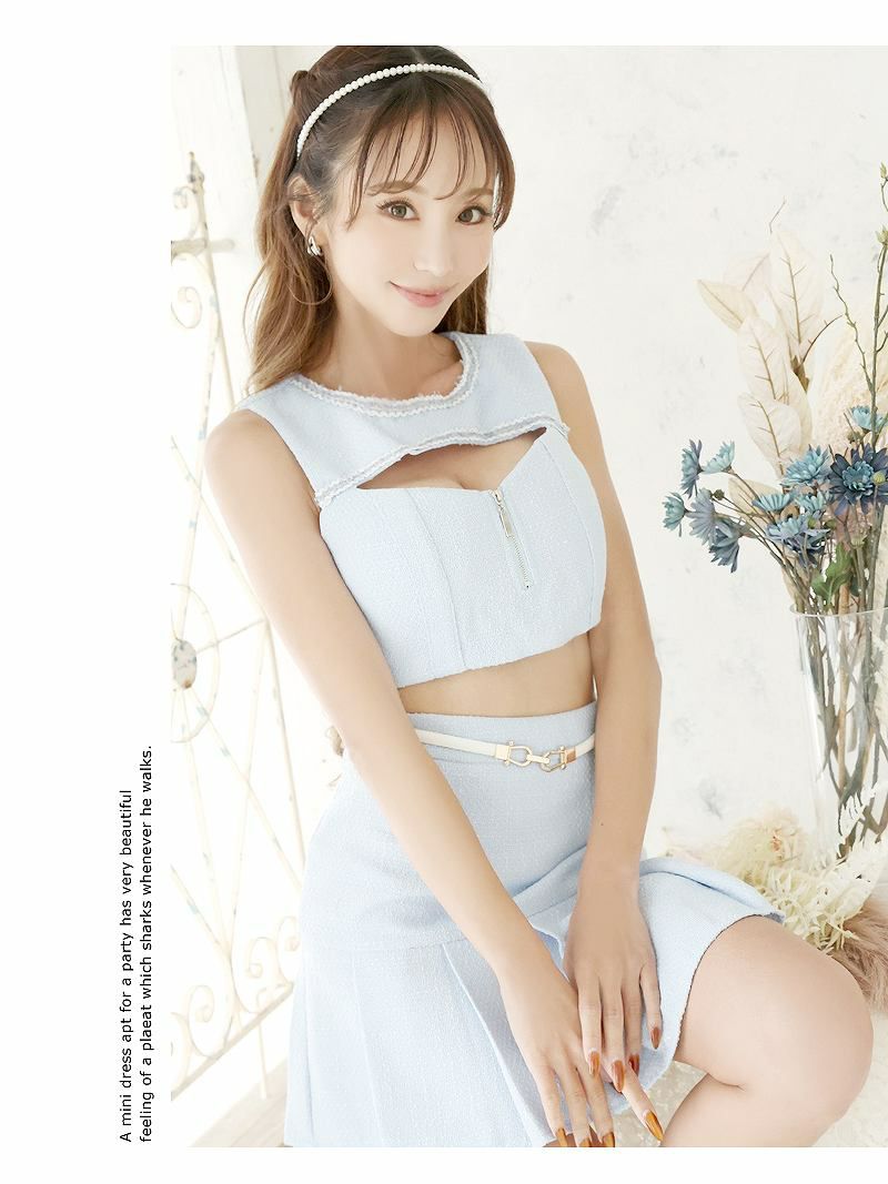 5. スーパーSALE¥9790→¥5333! 谷間見せツイードセットアップミニドレス 武田静加 着用 キャバクラドレス【Belsia】(S/M/L)(ブルー/ピンク)