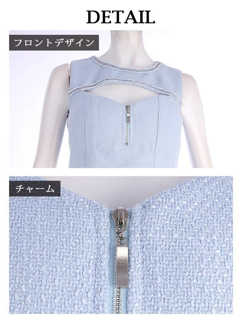 6. 【訳ありアウトレット】品格ツイードミニスカートセットアップキャバドレス【Belsia】(S/M/L)(ブルー/ピンク)