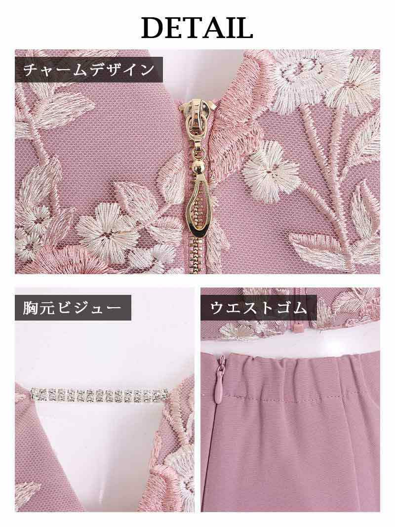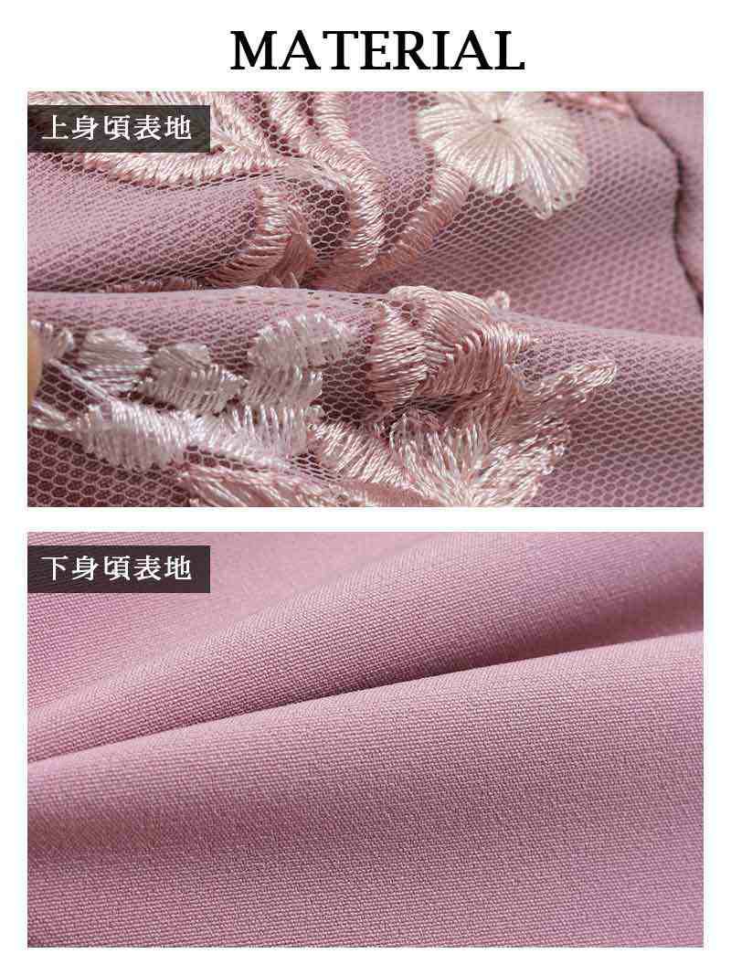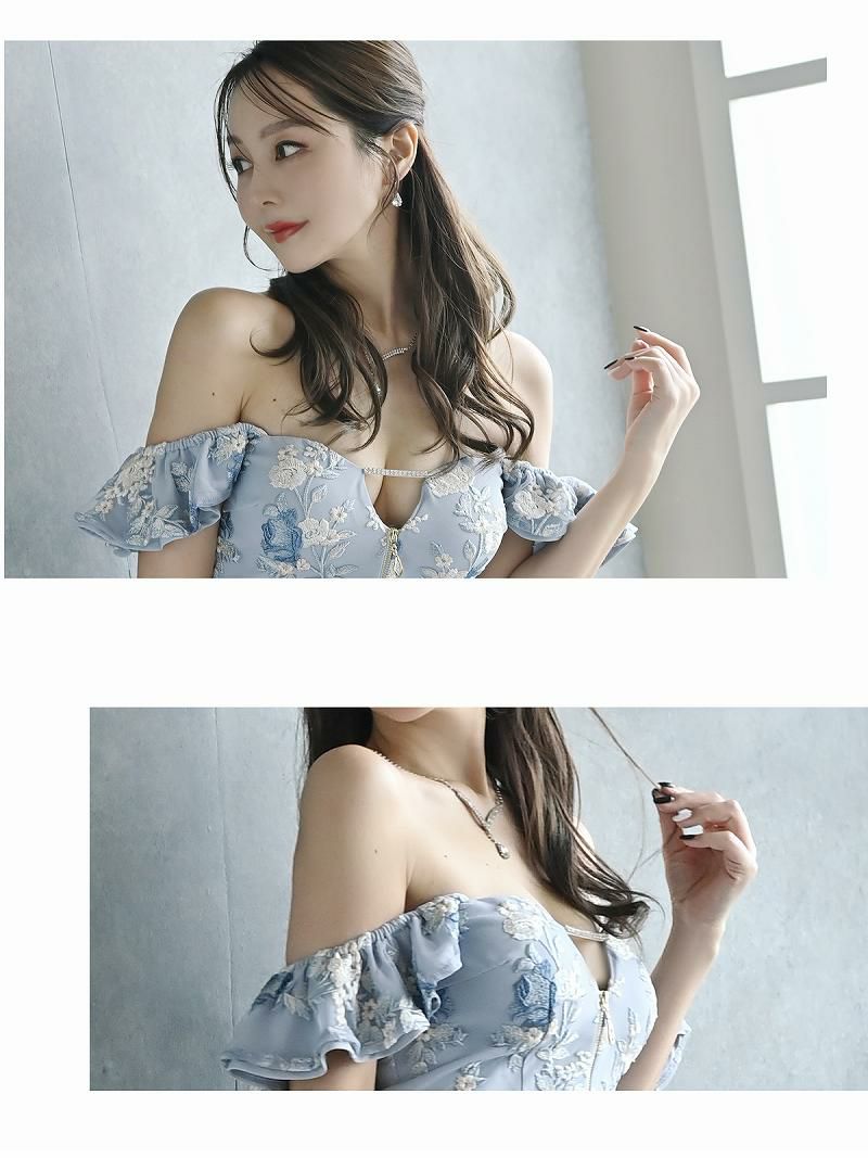 フリル袖と花柄刺繍が華やかさを演出し、エレガントで魅力的なキャバドレス。
