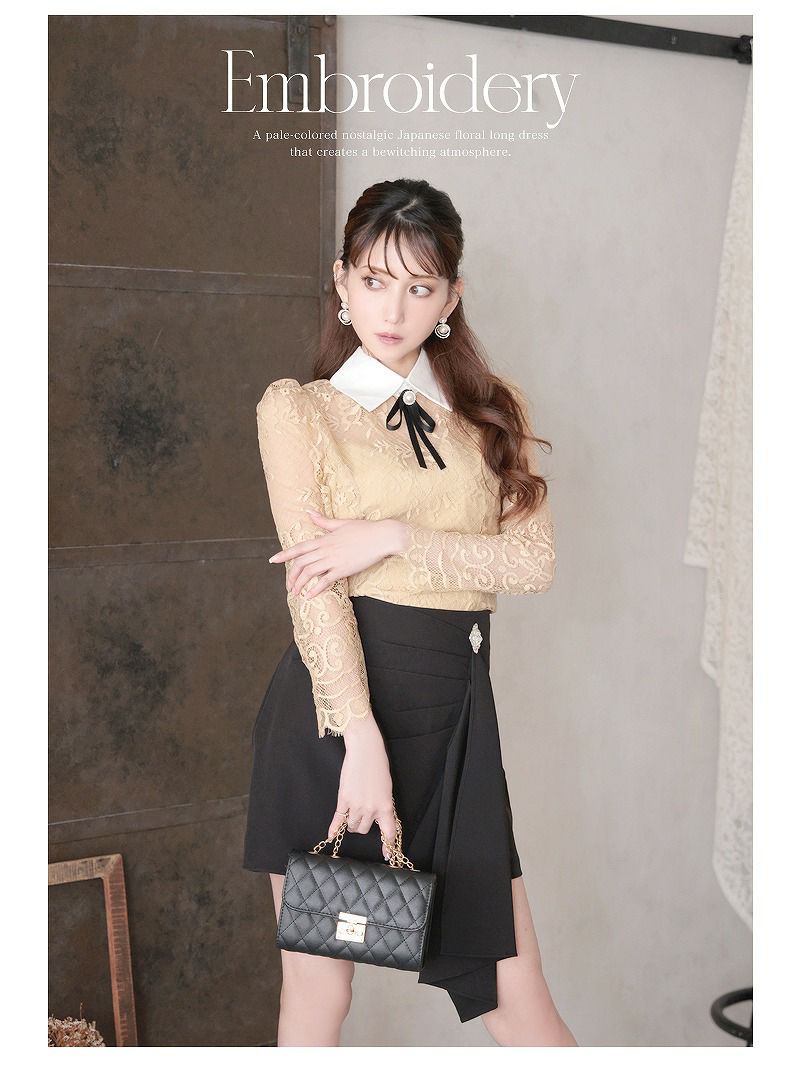 6. 先行予約割¥8380→¥7961!※一部予約販売※レース襟付きセットアップミニセットアップドレス 加賀美早紀 着用 キャバドレス【Belsia】(M/L/XL(2L))(ベージュ(M/L/3月中旬))
