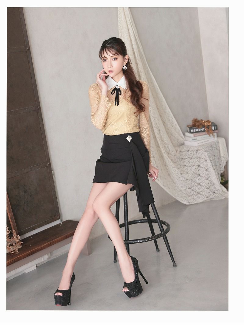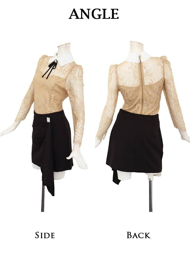 レース襟付きセットアップミニセットアップドレス 加賀美早紀 着用 キャバドレス【Belsia】