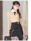 韓国風の襟付きブラウジングトップスとカシュクールスカートがセットになったミニドレスです