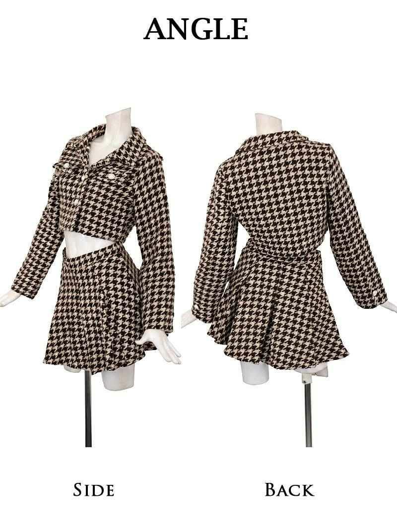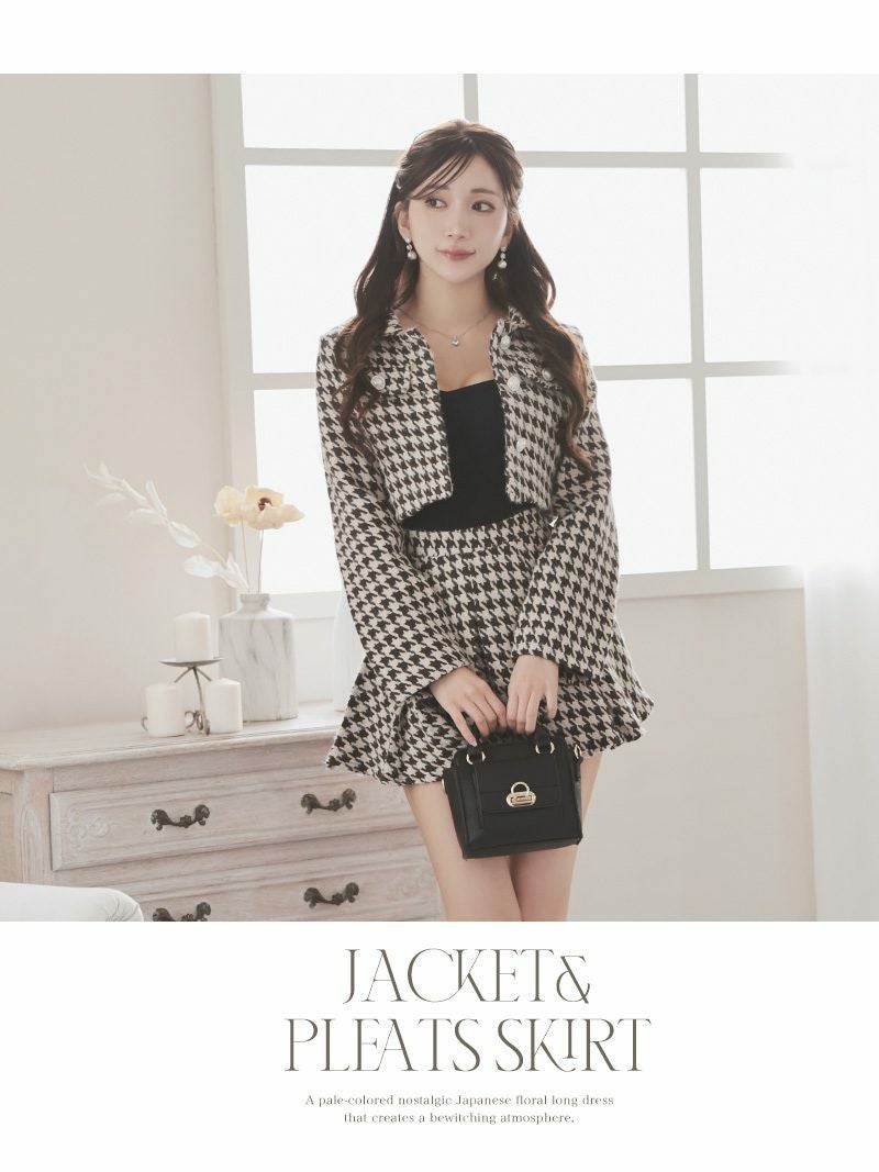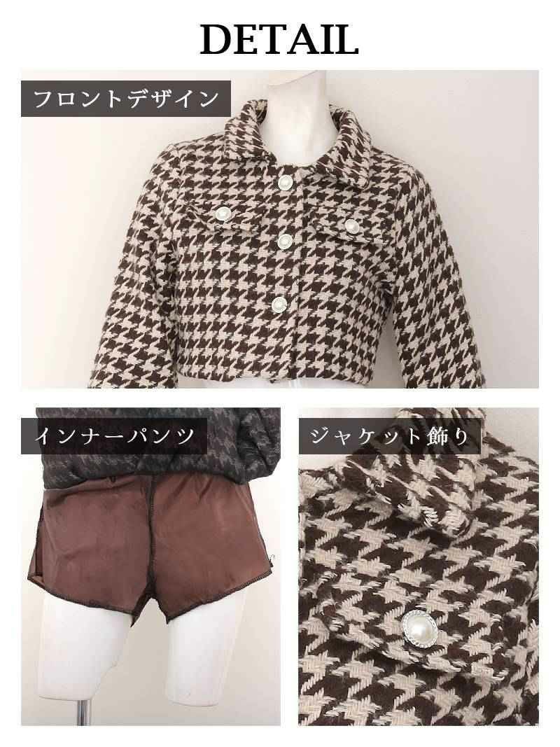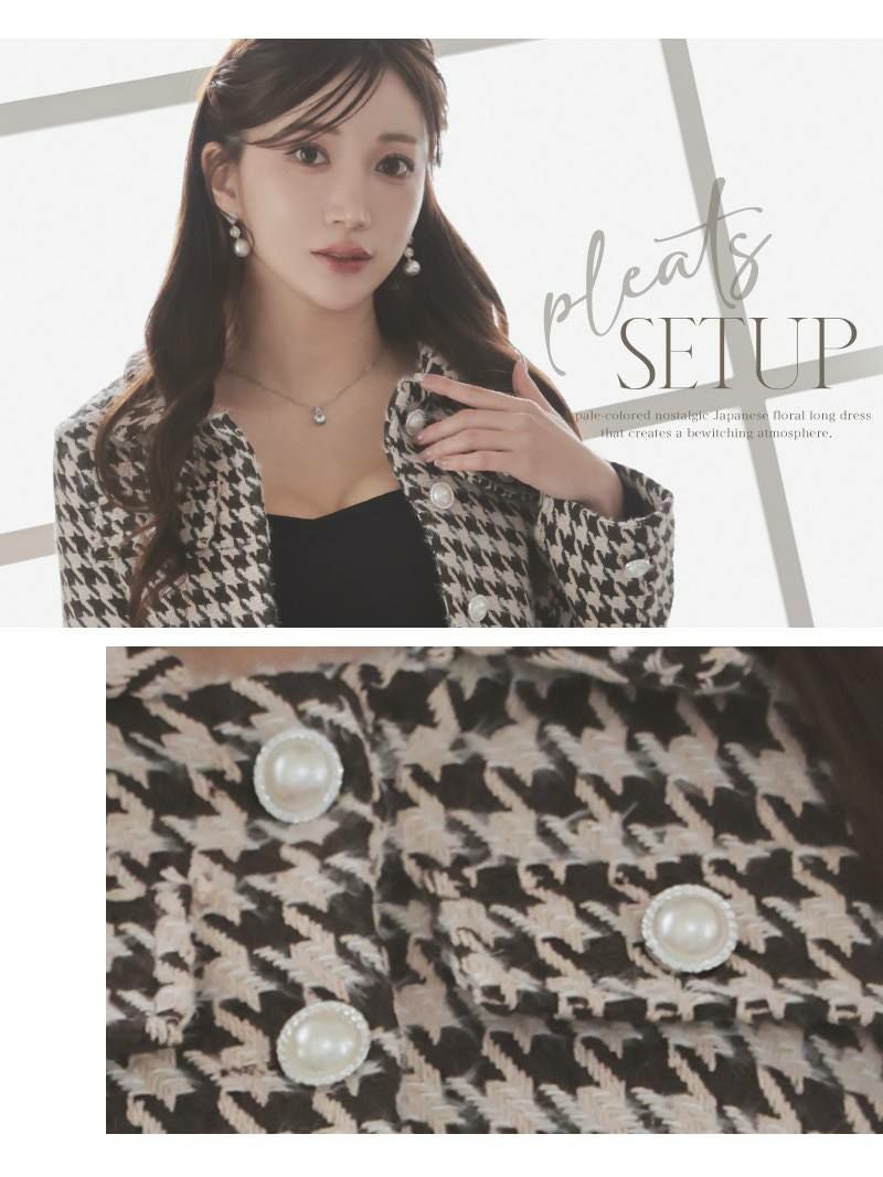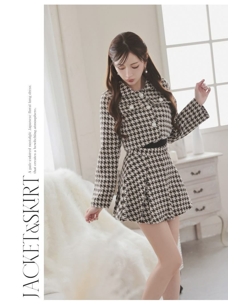 クラシカルな千鳥柄にパールボタンが映える厚手ツイードの韓国風セットアップスーツ 【Ryuyu】