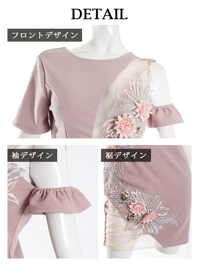 5. メッシュバストカット ゆずは着用 ミニ丈キャバドレス【Ryuyu】(S/M/L)(ピンク/ホワイト/グレー)