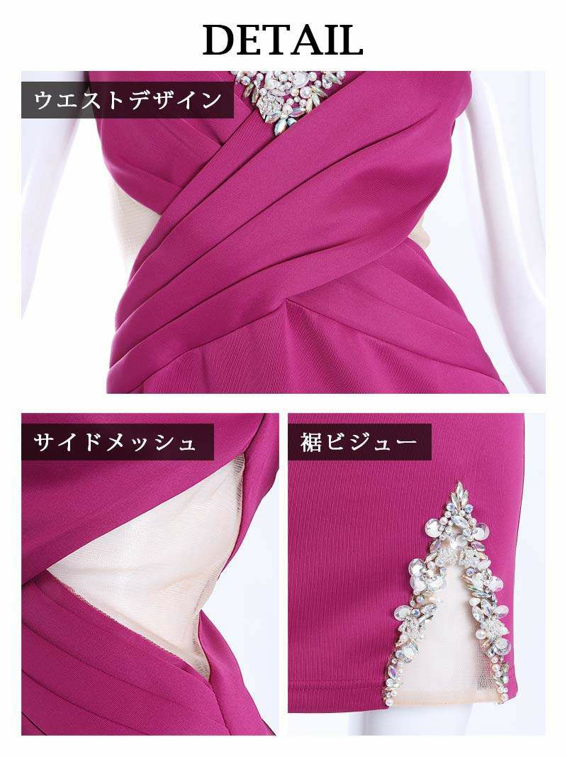 4. 【Angel R/エンジェルアール】バストビジュークロスタックキャバドレス(S/M)(ブラック/ローズピンク)