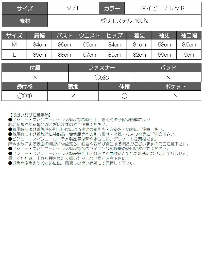 5. スパンコールシアー袖付きミニドレス【RyuyuChick】(M/L)(ネイビー/レッド)