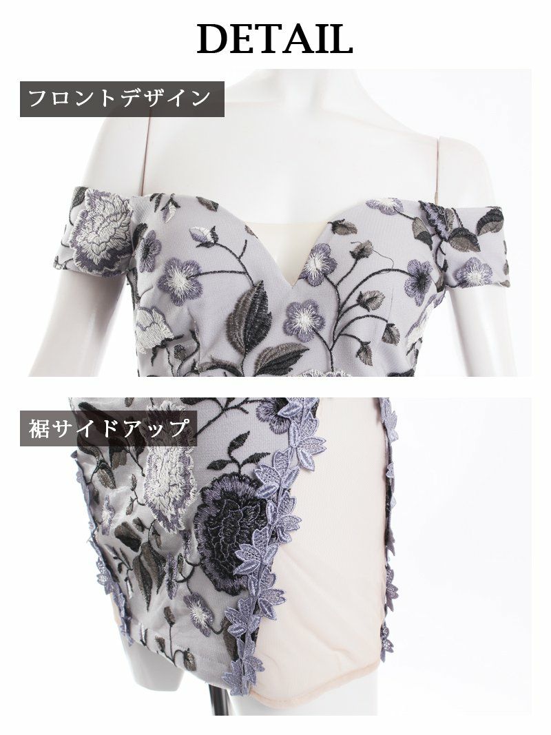 5. 【訳ありアウトレット】花刺繍タイトキャバクラミニシアードレス【Belsia】(S/M/L)(ブルー/グレー) ptpl