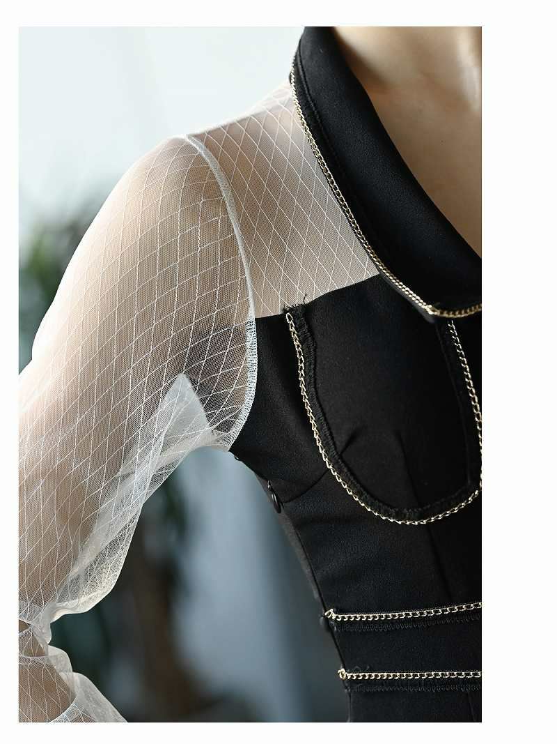 6. 【訳ありアウトレット】長袖デザインの韓国キャバワンピース【DAYS PIECE】(S/M/L/XL)(ブラック) ptpl