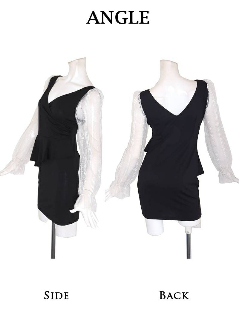 5. エレガントな総レース袖!サイドカットアウトが色っぽいタイトミニドレス あいさ 着用 キャバドレス【RyuyuChick】(S/M/L/XL(2L))(ブラック)