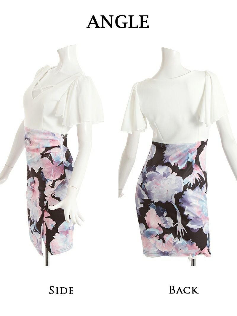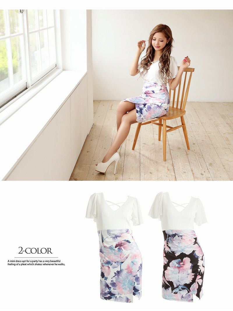 【訳ありアウトレット】花柄シフォン袖膝丈キャバクラミニドレス【Ryuyu】