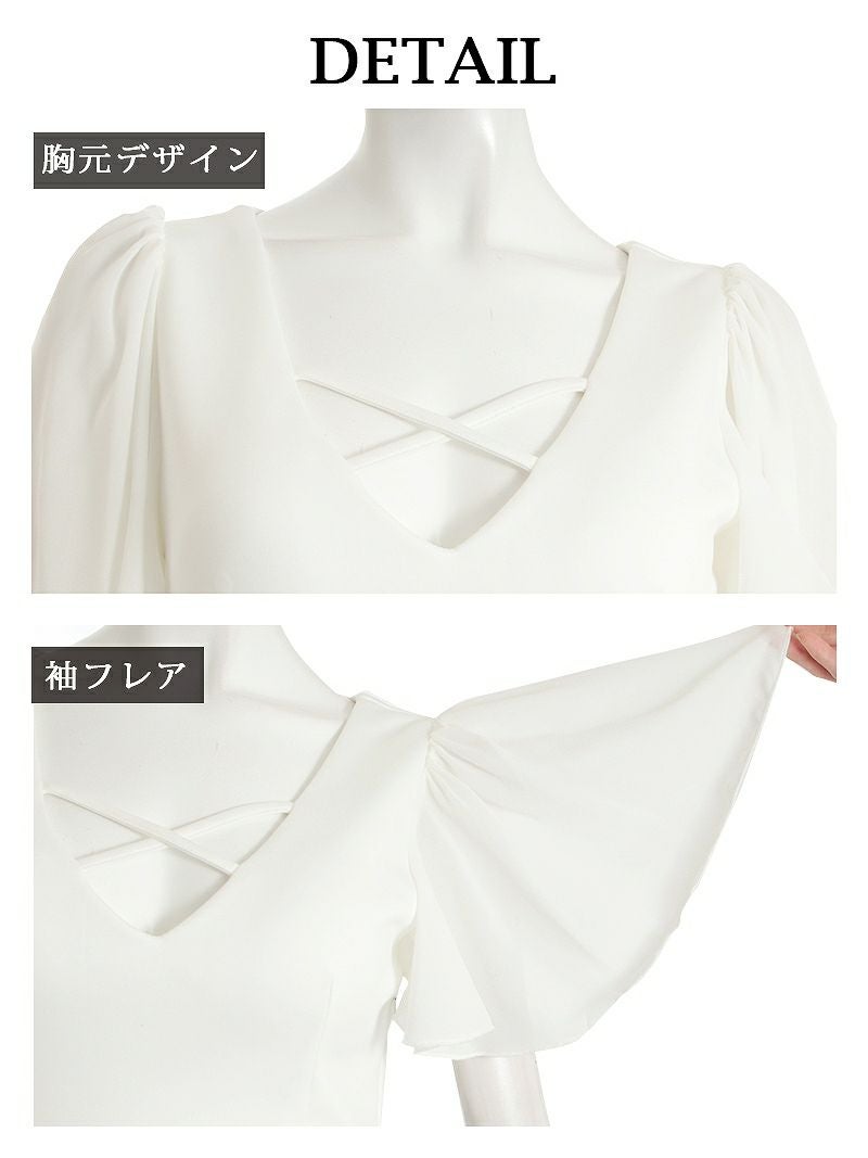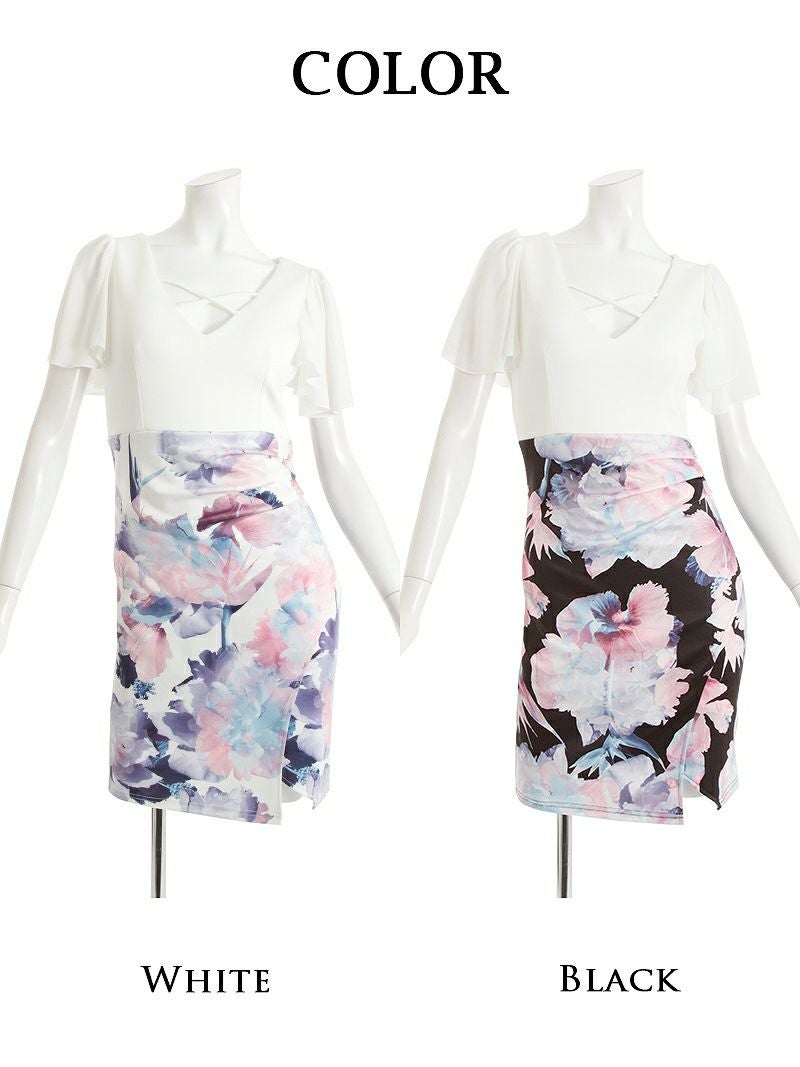 4. 【訳ありアウトレット】花柄シフォン袖膝丈キャバクラミニドレス【Ryuyu】(S/M/L/XL)(ブラック/ホワイト) ptpl