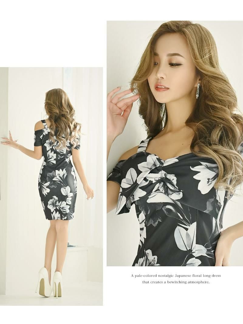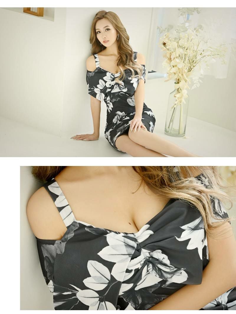 大人の魅力が引き立つフラワー袖付きタイトストレッチキャバミニドレス、訳ありアウトレットで超お得!数量限定の1点ものです。