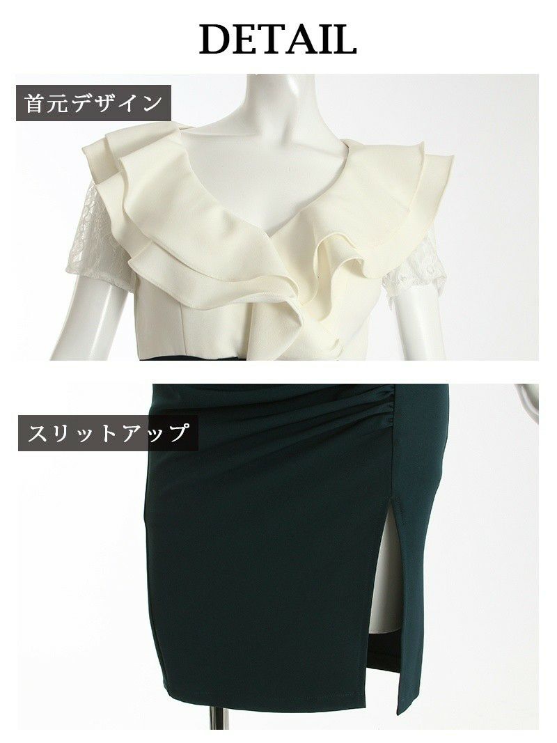 Aラインフリル袖付きキャバ可愛いミニ丈キャバワンピース【Ryuyu】(S/M/L)(ネイビー/ベージュ)