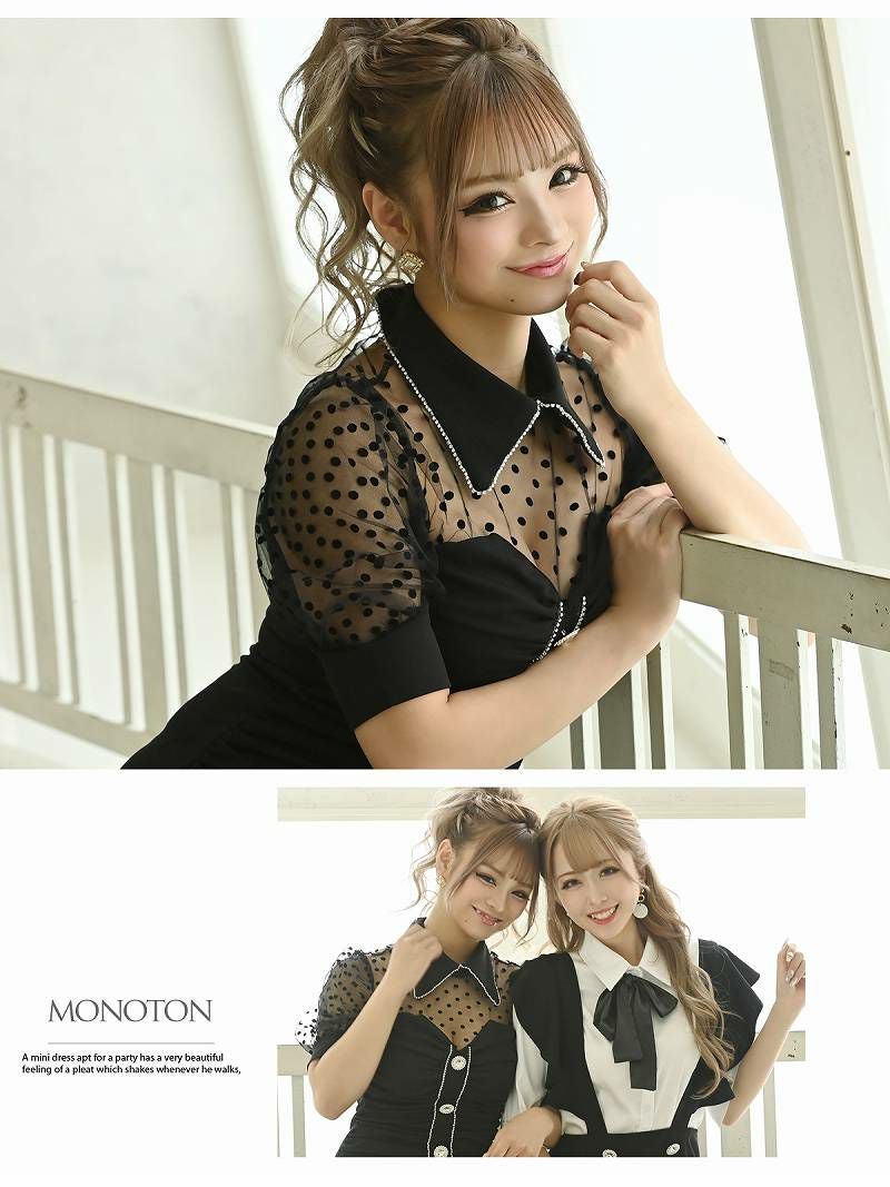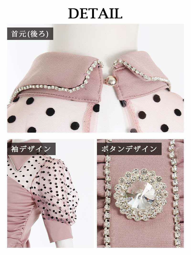 4. 【訳ありアウトレット】袖付シアー水玉キャバミニドレス【Ryuyu】(S/M/L)(ピンク/ブルー/ブラック) ptpl