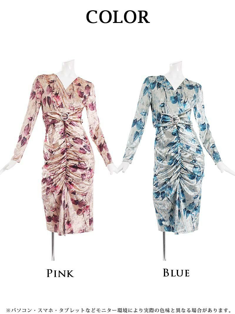 4. 【訳ありアウトレット】袖付フラワー大人タイト韓国キャバワンピース【DAYS PIECE】(S/M/L)(ピンク/ブルー) ptpl