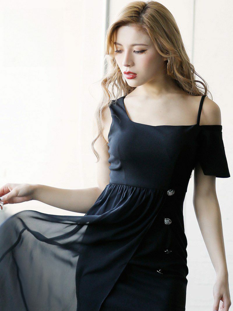 サイドにあるレイヤードシフォンが動く度なびくワンカラードレスは、ライバルとは被りにくいオルチャン風ドレス。