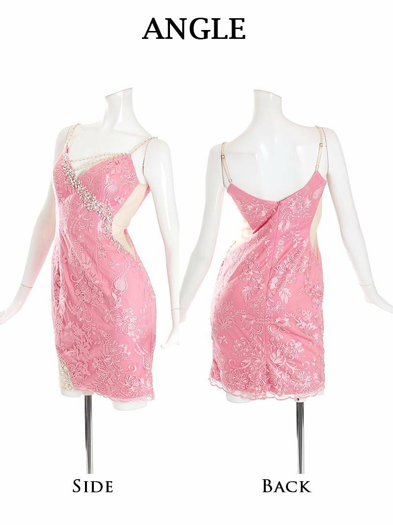 5. 【Angel R/エンジェルアール】花柄レースシアービジューキャバドレス(S/M)(サックス/ピンク)