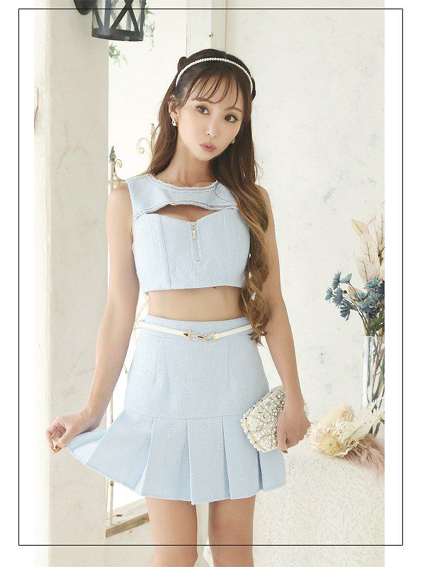 可愛いのにsexyさもある! フロントジップ谷間見せセットアップミニドレス キャバクラドレス【Belsia】(S/M/L)(ブルー/ピンク)