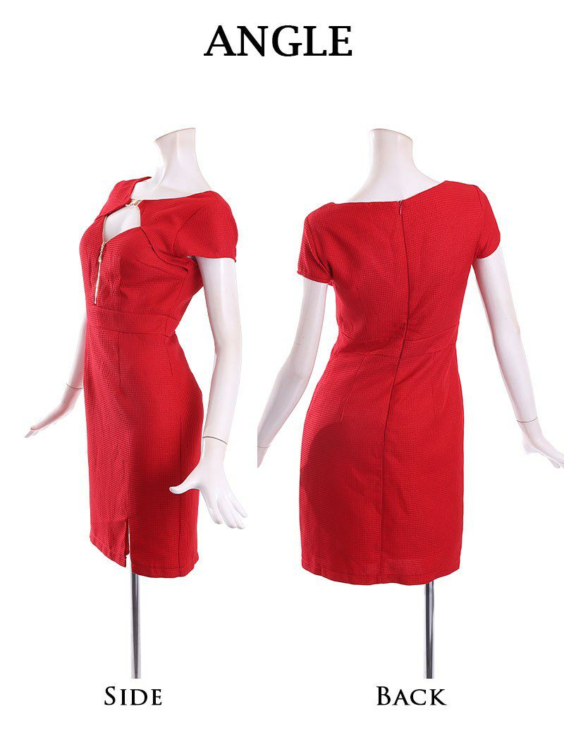 6. 【訳ありアウトレット】袖付ハイウエスト妖艶キャバ嬢ミニドレス【BelsiaLUX】(S/M/L)(ローズ)