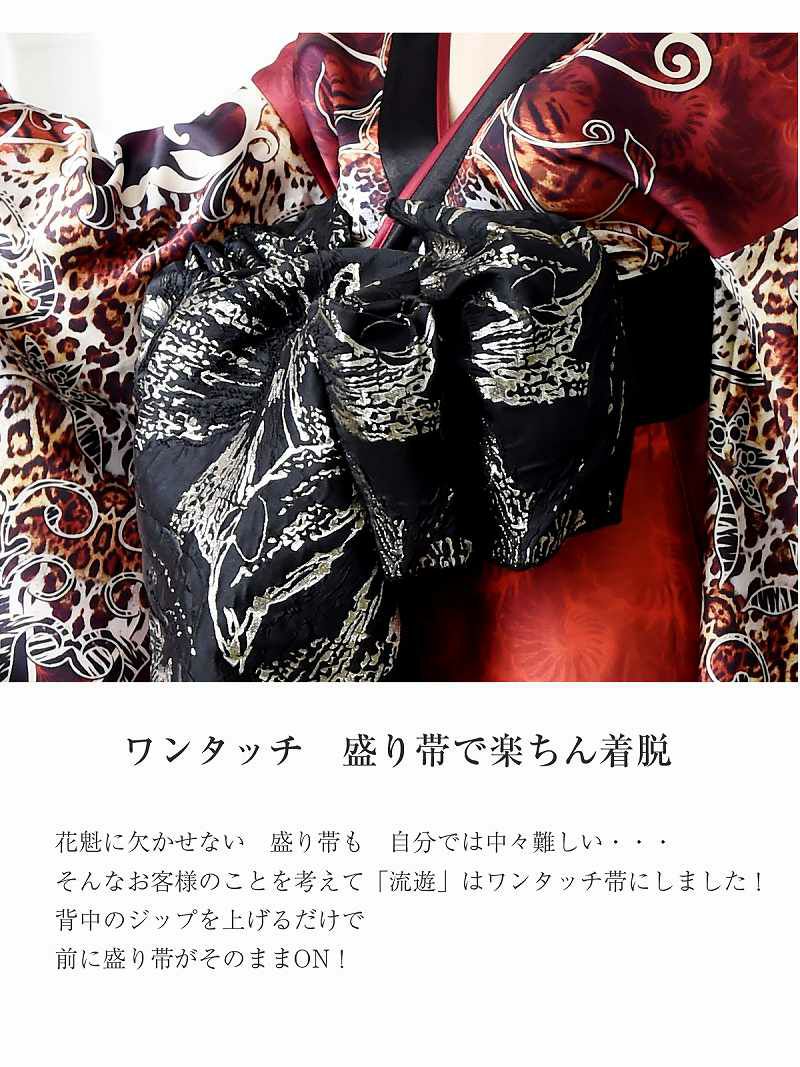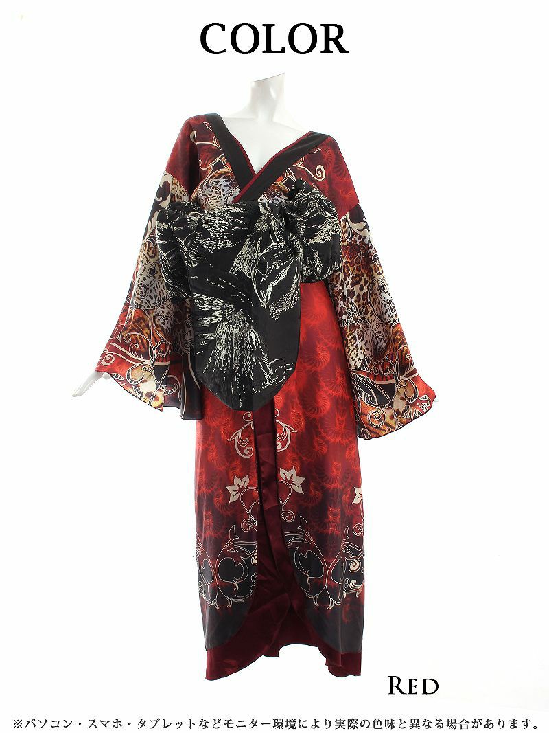 訳あり和のワイルドキャット 【訳ありアウトレット】和テイスト豹柄の豪華花魁セクシー和柄ドレス【流遊】(S/M/L/XL)(レッド)