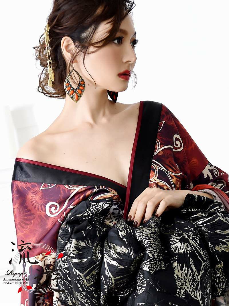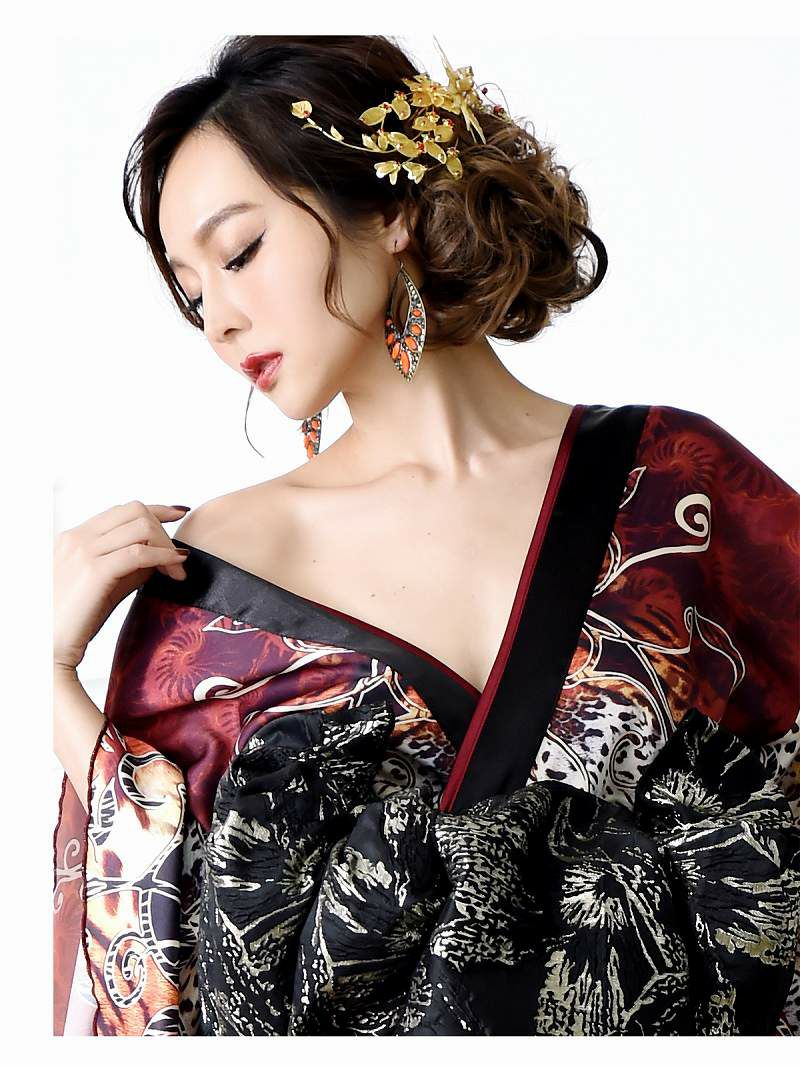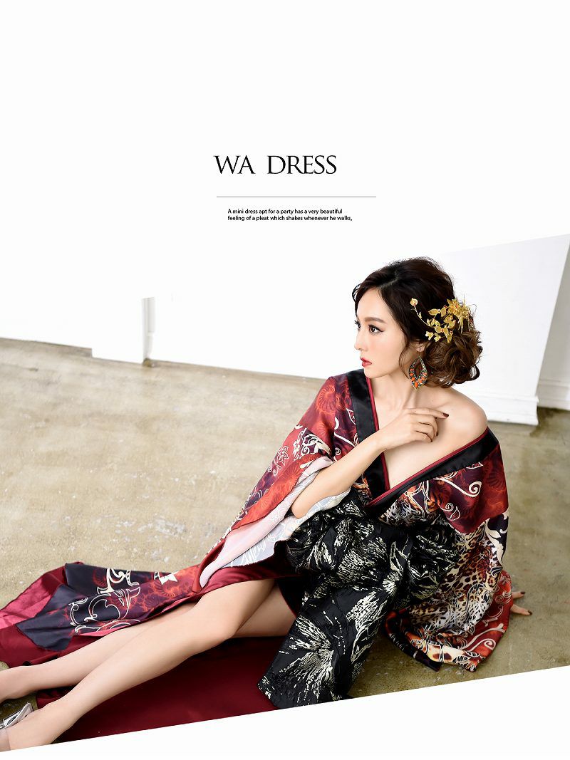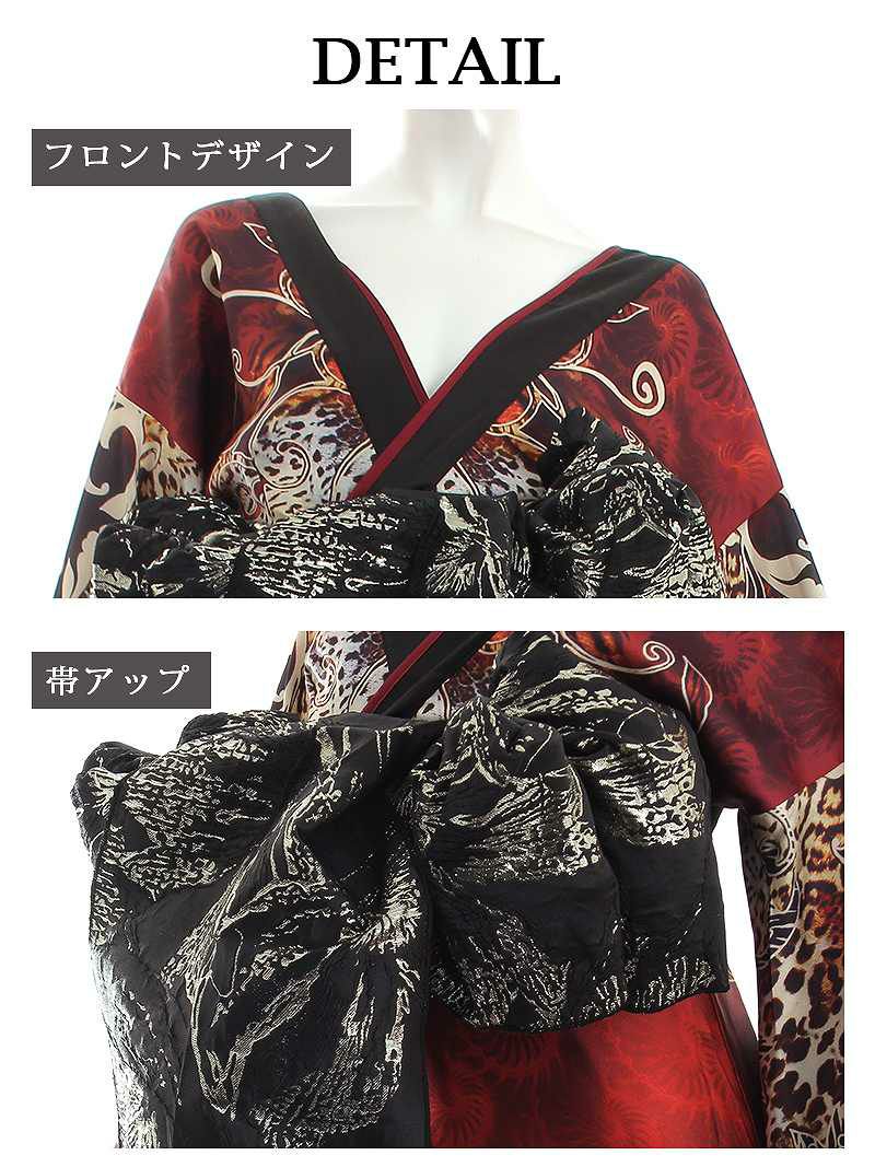 【訳ありアウトレット】和テイスト豹柄の豪華花魁セクシー和柄ドレス【流遊】