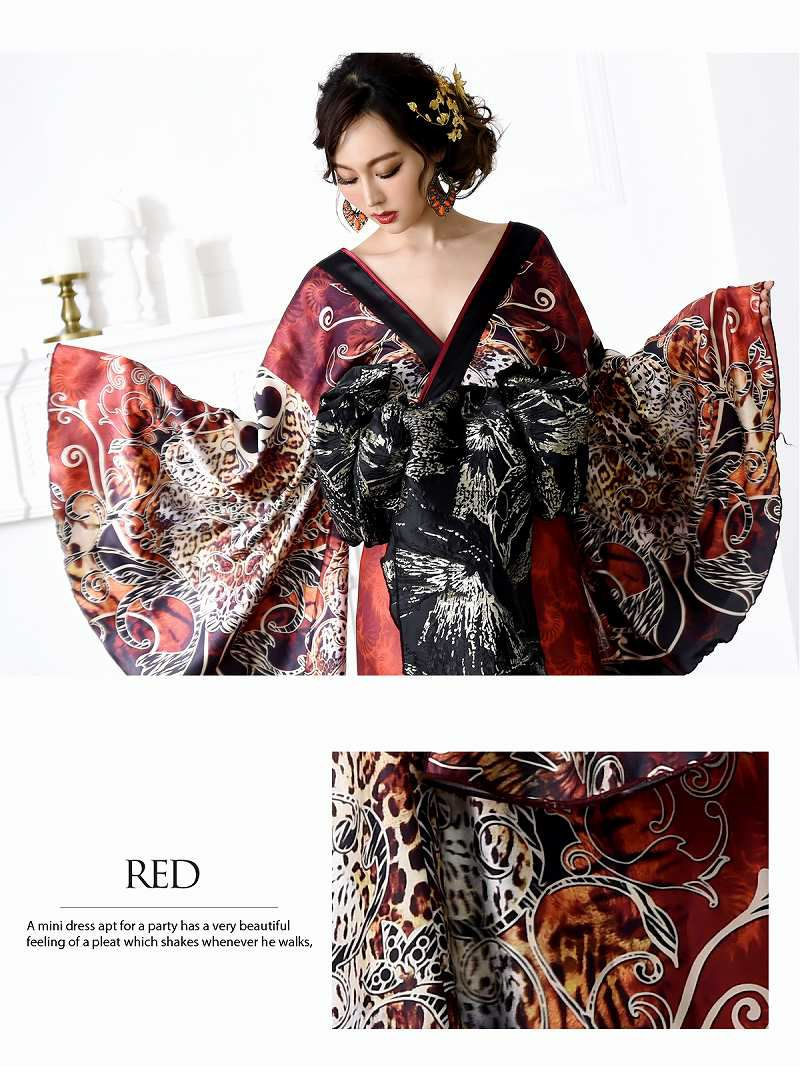 5. 【訳ありアウトレット】和テイスト豹柄の豪華花魁セクシー和柄ドレス【流遊】(S/M/L/XL)(レッド)