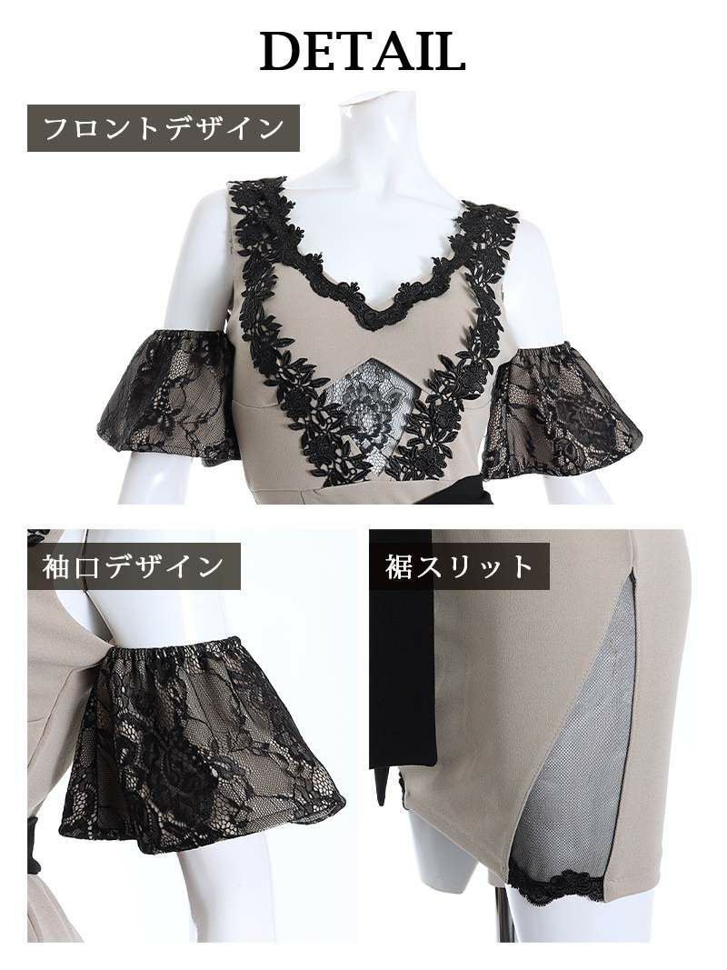 カッティング袖と贅沢レースで魅せる、上品さと色気を兼ね備えた最旬韓国風ドレス! 先行予約割¥9880→¥9385!※一部予約販売※ボリューム袖カッティングデザインレース切替タイト韓国風パーティードレス KANO 着用 キャバワンピース【DaysPiece】(S/M/L/XL(2L))(ブラック)