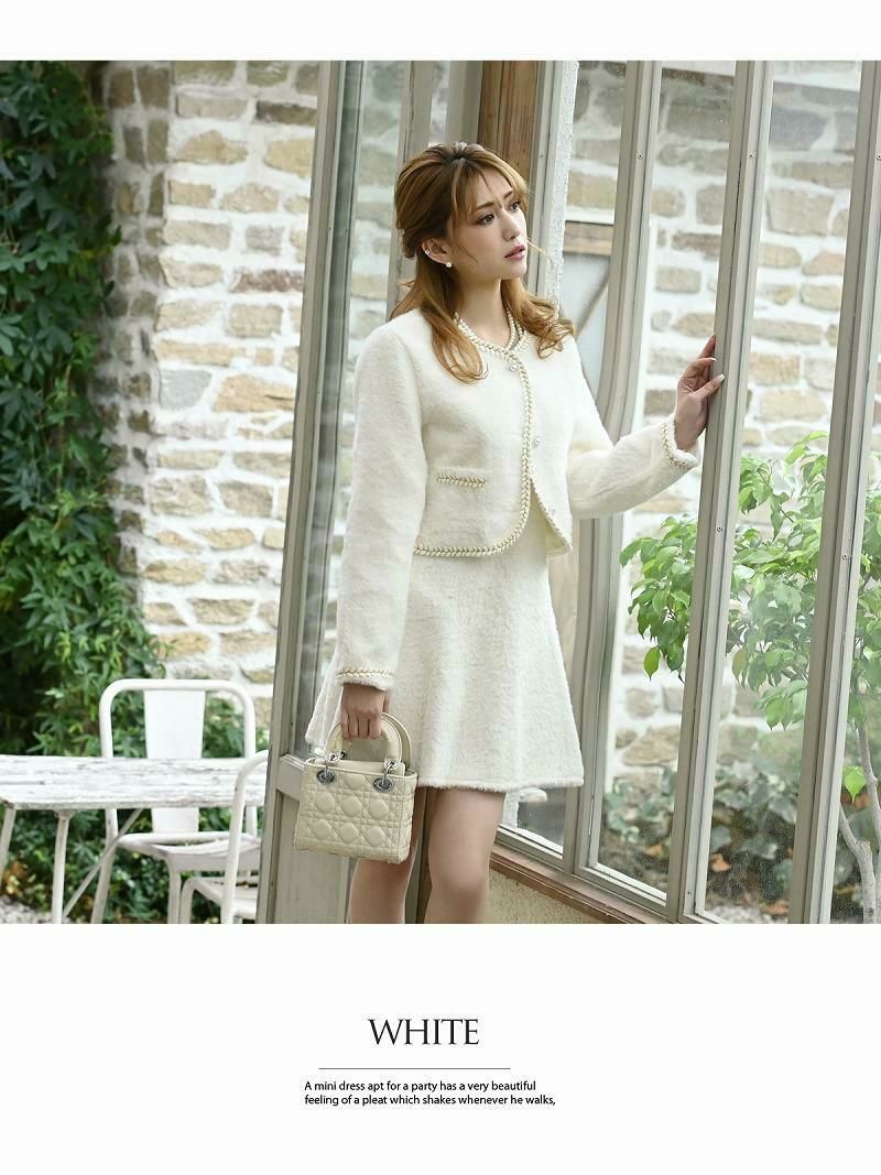 卒業式・入園式・入学式にも! 年末ノルマ達成応援SALE¥7980→¥6384! ショートモヘア風ワンピキャバスーツ 加賀美早紀 着用キャバクラスーツ 【Belsia】(M/L)(ホワイト/ピンク/グリーン)