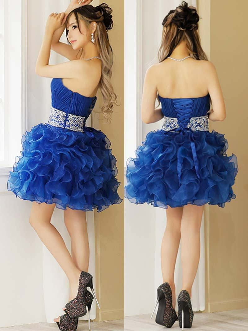 luxuaryな雰囲気が色っぽい 【Angel R/エンジェルアール】ビジューライン谷間魅せキャバドレス えがさり 着用 ミニドレス(S/M)(ブルー/ホワイト/ピンク)