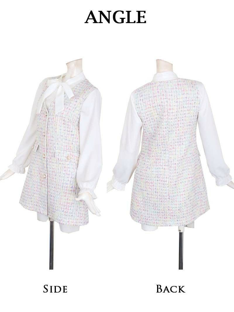 大人ツイードの魅力、キレイめに 本格フォーマル!上質ミックスツイード式スーツ/キャバスーツ【BelsiaLUX】(S/M/L)(ブラック/ピンク)