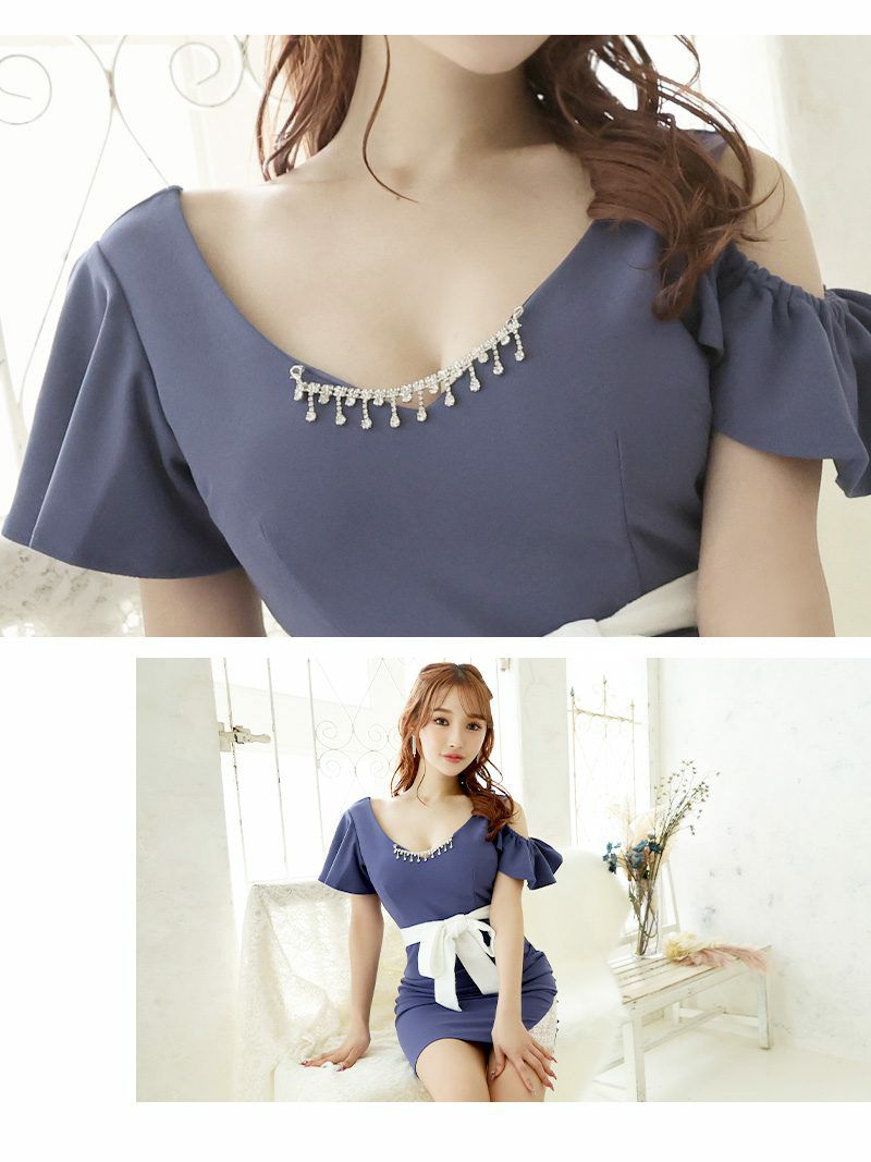 トレンドデザインを詰め込んだ欲張りドレス! フラワー刺繍サイドシアーウエストリボンミニドレス りあな 着用キャバクラドレス【Ryuyu】(S/M/L)(グレー/ブラック) ptpl