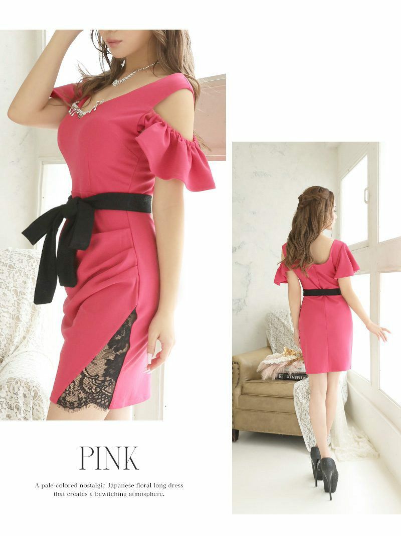 選べる2タイプ!! ベルト付き花柄刺繍レースミニドレス NATSUNE着用キャバクラドレス【Ryuyu】(S/M/L)(ピンク(フレア)/ホワイト(フレア)/ピンク(タイト)/ホワイト(タイト)) ptpl