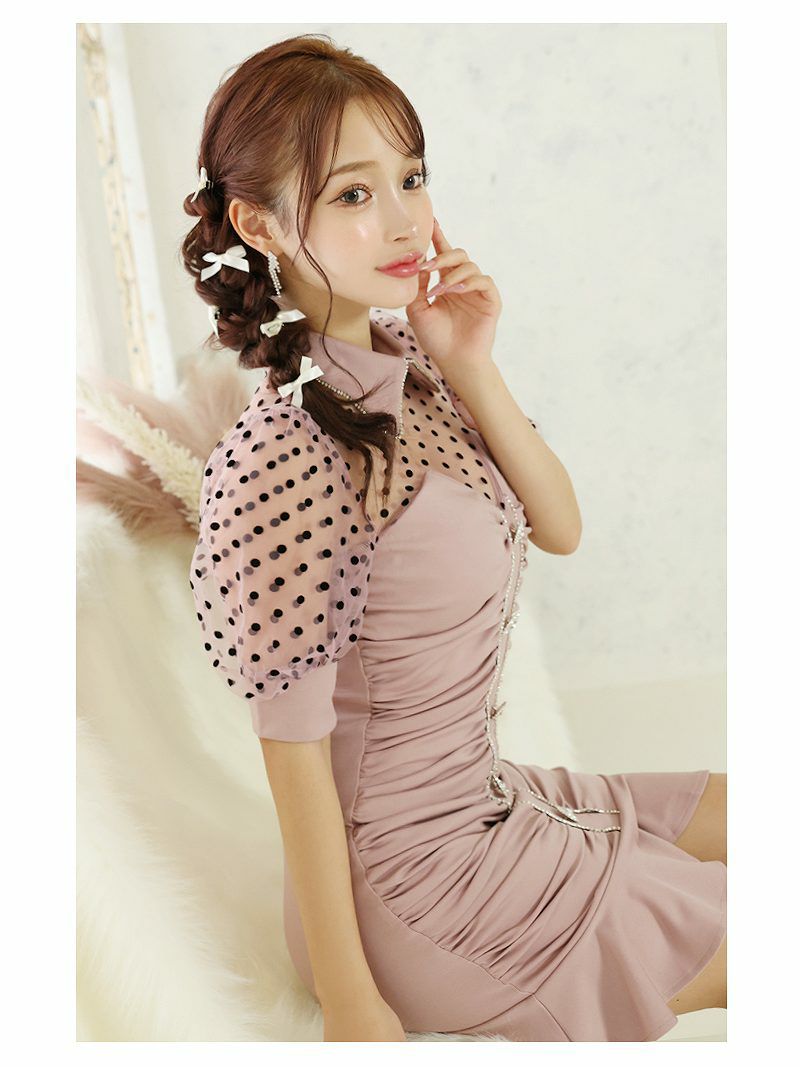 飲み過ぎちゃっても安心のペプラムドレス パステルカラーペプラムフレア袖ミニドレス【Ryuyu】(S/M/L)(ブルー/イエロー/ピンク) ptpl