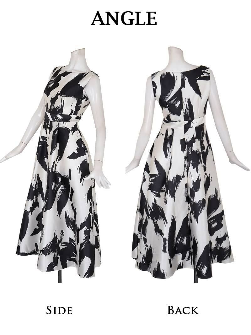 上質シルエットで魅せる、大人のための韓国風キャバワンピ 先行予約割¥8980→¥8530!※一部予約販売※大人花柄モノトーンタイト長袖韓国ワンピース KANO 着用 キャバワンピース【DAYS PIECE】(S/M/L/XL(2L))(ホワイト/ブラック)