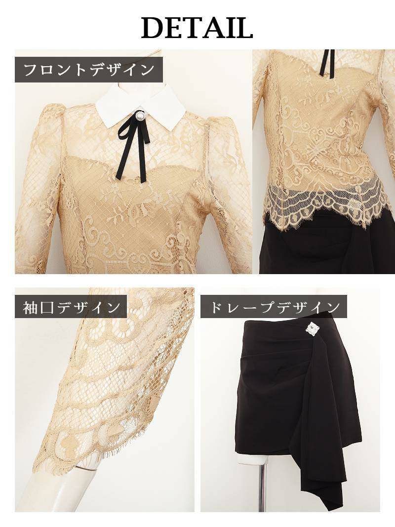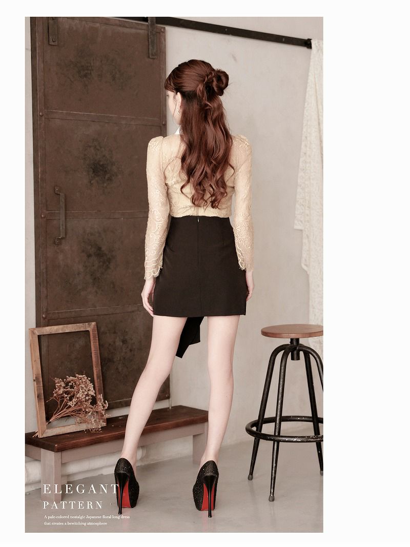 sexyにアピールしながら体型カバーできちゃう♪ 先行予約割¥7680→¥7295!※一部予約販売※谷間魅せブラックレース袖付きペプラムキャバドレス ゆずは みりちゃむ 着用ミニドレス【Ryuyu】(S/M/L/XL(2L)/XXL(3L))(ベージュ/バーガンディー) ptpl