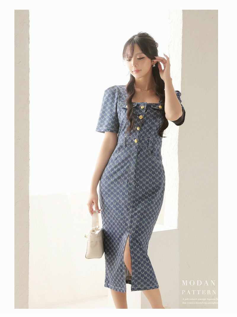 清楚で上品、同伴にも映える高見えワンピ♪ 先行予約割¥3980→¥3781!※一部予約販売※クラシカル半袖ガーリーデザインタイトキャバワンピース りせり 着用 キャバドレス【RyuyuChick】(S/M/L/XL(2L)/XXL(3L)/XXXL(4L))(ネイビー)