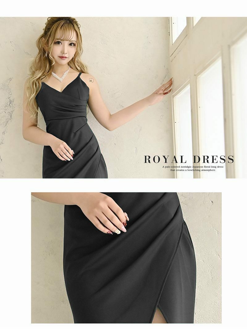 スリットから覗く美脚で誘惑して 先行予約割¥4980→¥4731!※一部予約販売※デコルテ魅せキャミロングドレス りせり あいみん 着用 キャバドレス【RyuyuChick】(S/M/L)(ブラック/ワイン/ホワイト/グリーン)