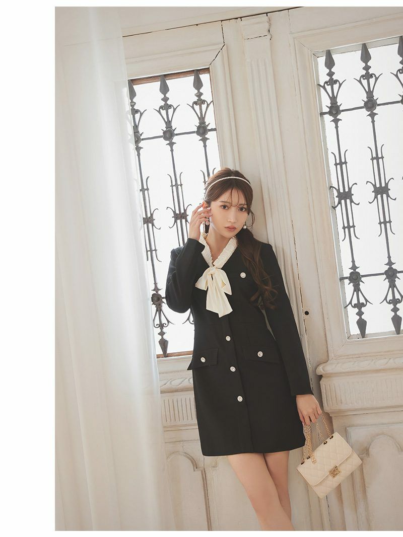 デコルテラインをすっきり見せ!小顔効果バツグン 先行予約割¥1980→¥1881!※一部予約販売※襟付きカシュクールタイトミニドレス【RyuyuChick】(M)(ブラック(3月下旬)/ホワイト(3月下旬)/レッド/ベージュ(3月下旬))