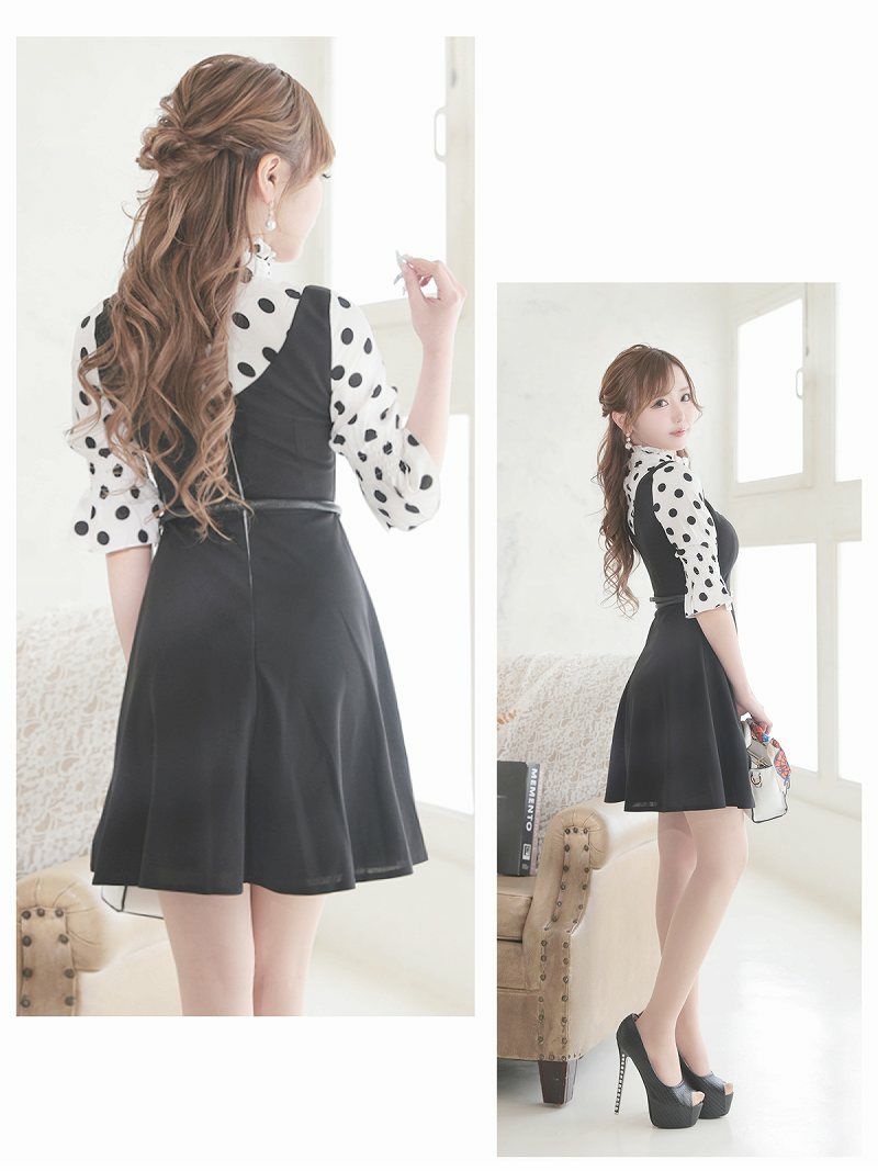ドット柄が可愛い七分袖キャバワンピースは、女の子らしいデザインが溢れ出る雰囲気を演出してくれて