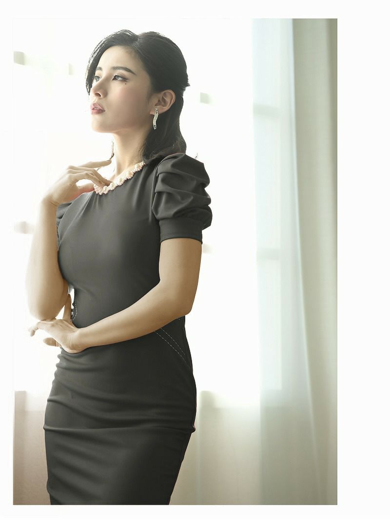 パフスリーブ膝丈キャバワンピース【DAYS PIECE】