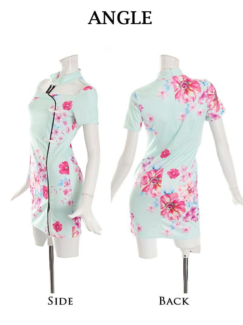 華やかな花柄デザインが目を引くチャイナ風ミニキャバワンピースです。
