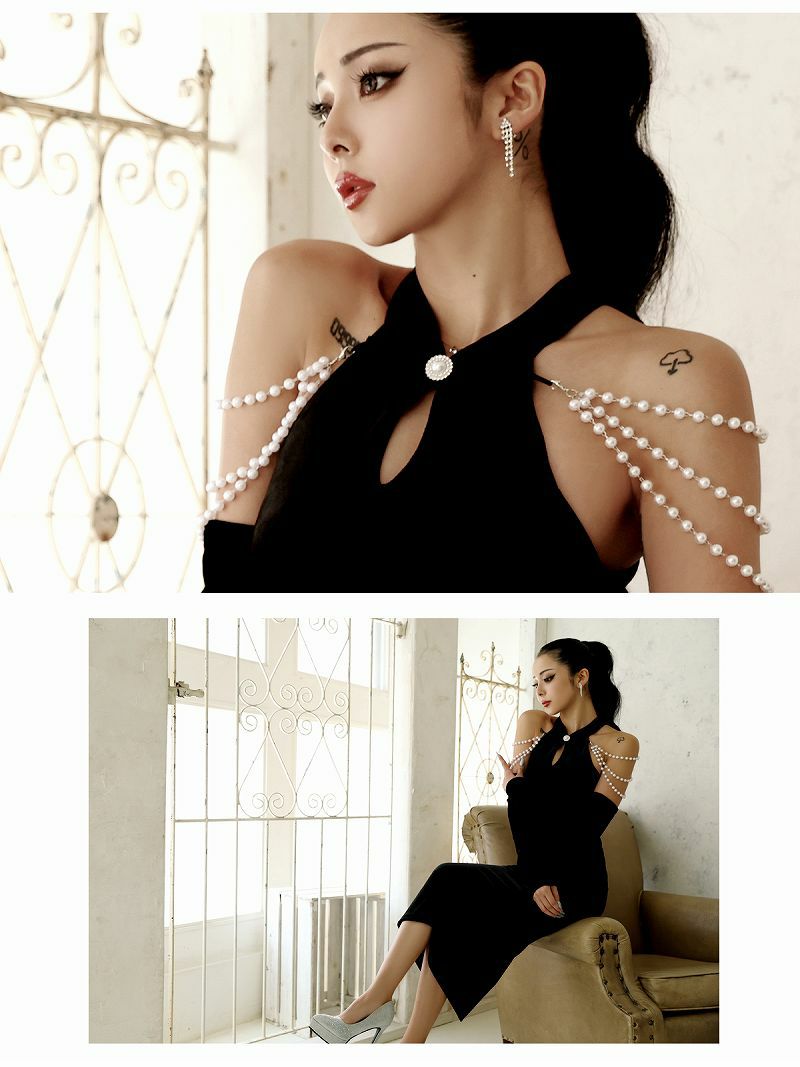 肩のパールラインが華やかさを纏うキャバワンピースはお仕事はもちろんパーティーなどお呼ばれドレスとしても大活躍。