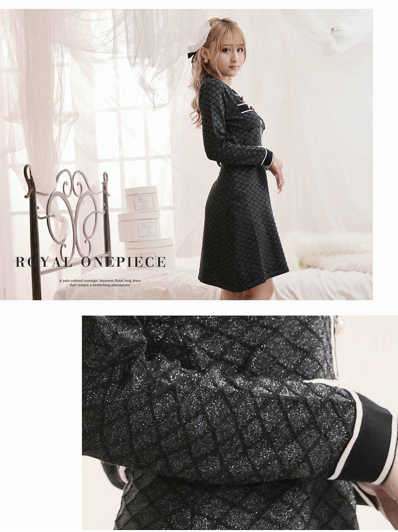 リボンブローチの甘めデザインと襟つきのきちんと感を演出できるデザインが同伴やお出かけなど幅広いシーンで着用できる長袖ワンピースです。
