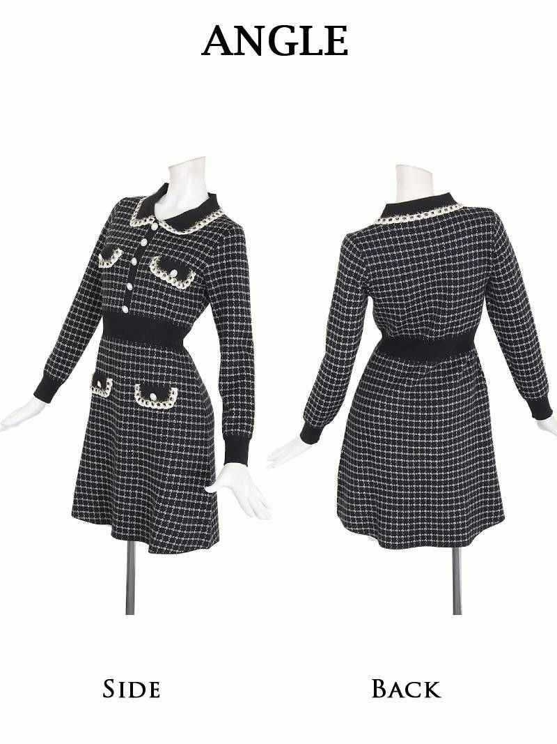 パイピングツイード長袖ニットキャバワンピース【Ryuyu】