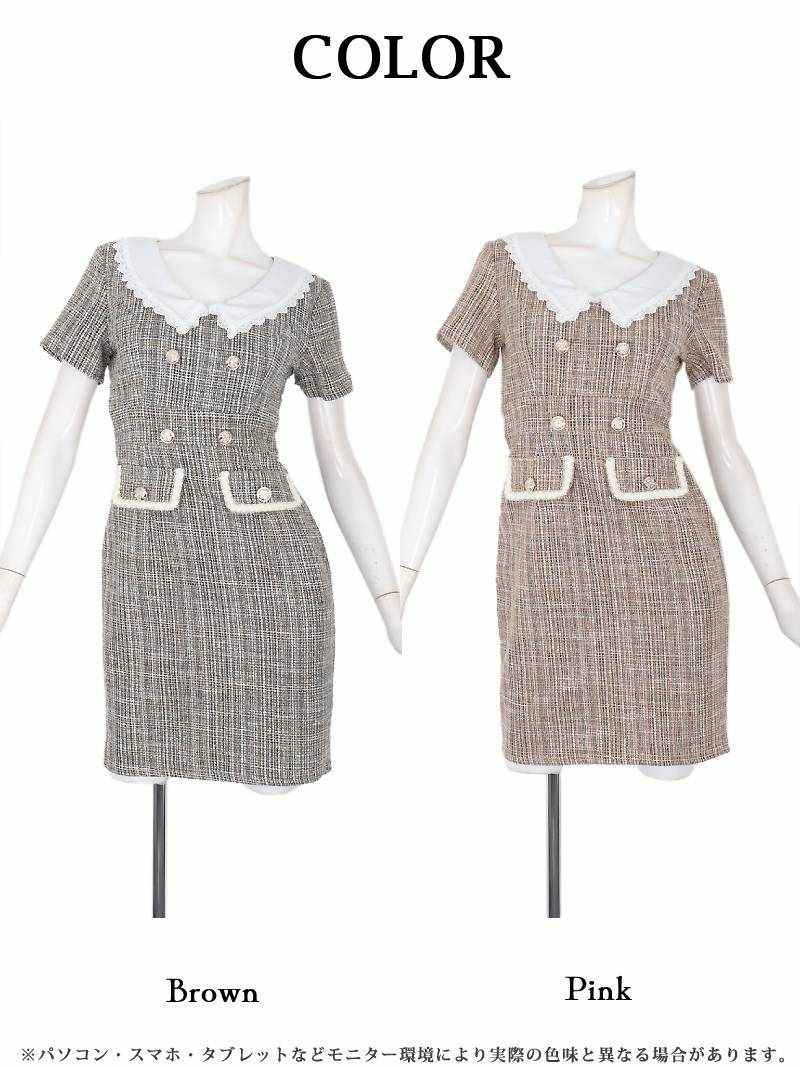 甘さたっぷりの愛されドールスタイル スーパーSALE¥6980→¥4332! フレンチガーリーカラーツイードタイトキャバワンピース【Ryuyu】(S/M/L)(ブラウン/ピンク)
