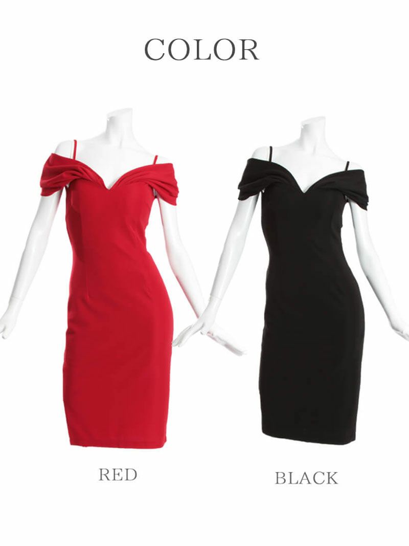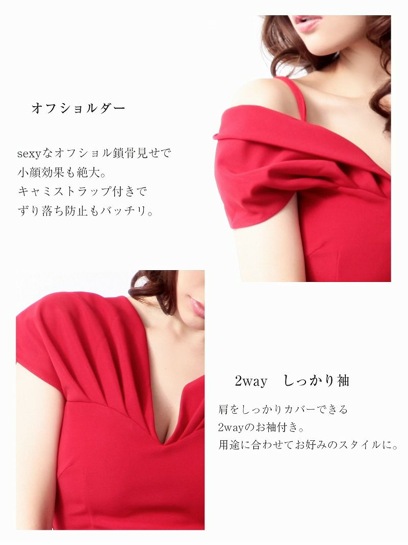 4. 【訳ありアウトレット】オフショル袖付き膝丈ワンピース【LAfume】(S/M/L)(レッド/ブラック)