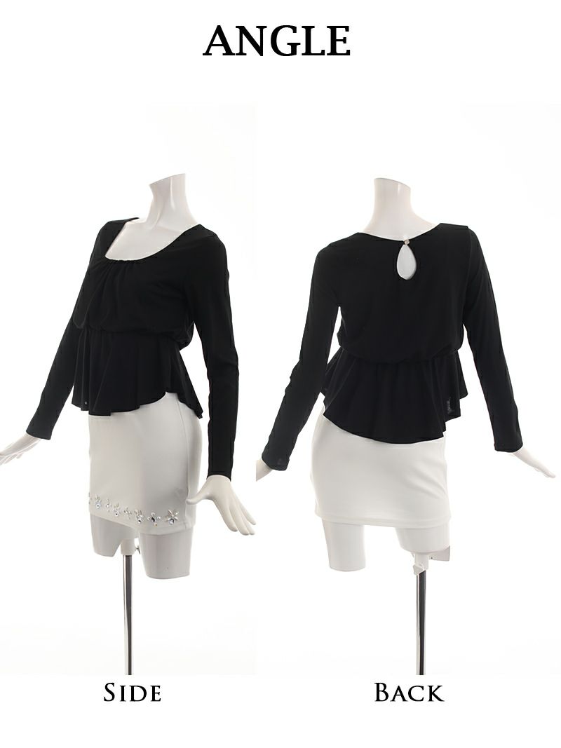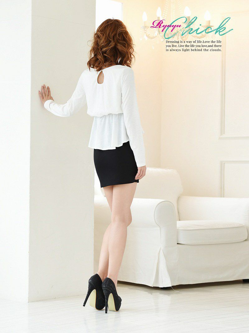4. 【訳ありアウトレット】長袖ペプラムcuteキャバクラミニワンピ【RyuyuChick】(S/M/L/XL/XXL)(ブラック/ホワイト)